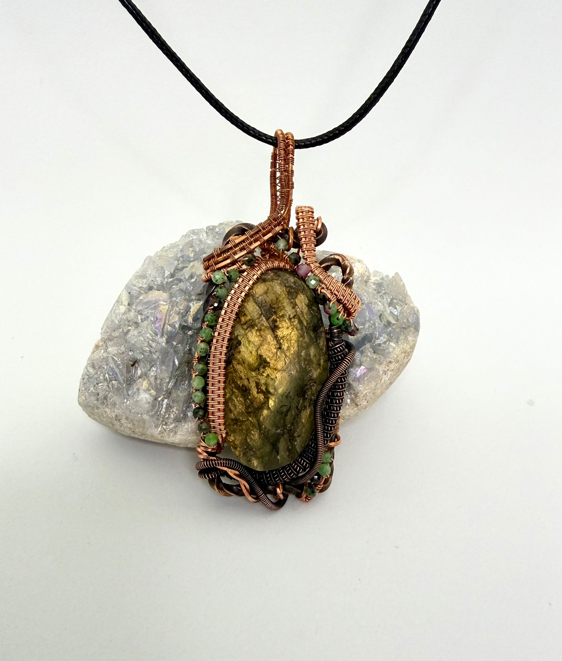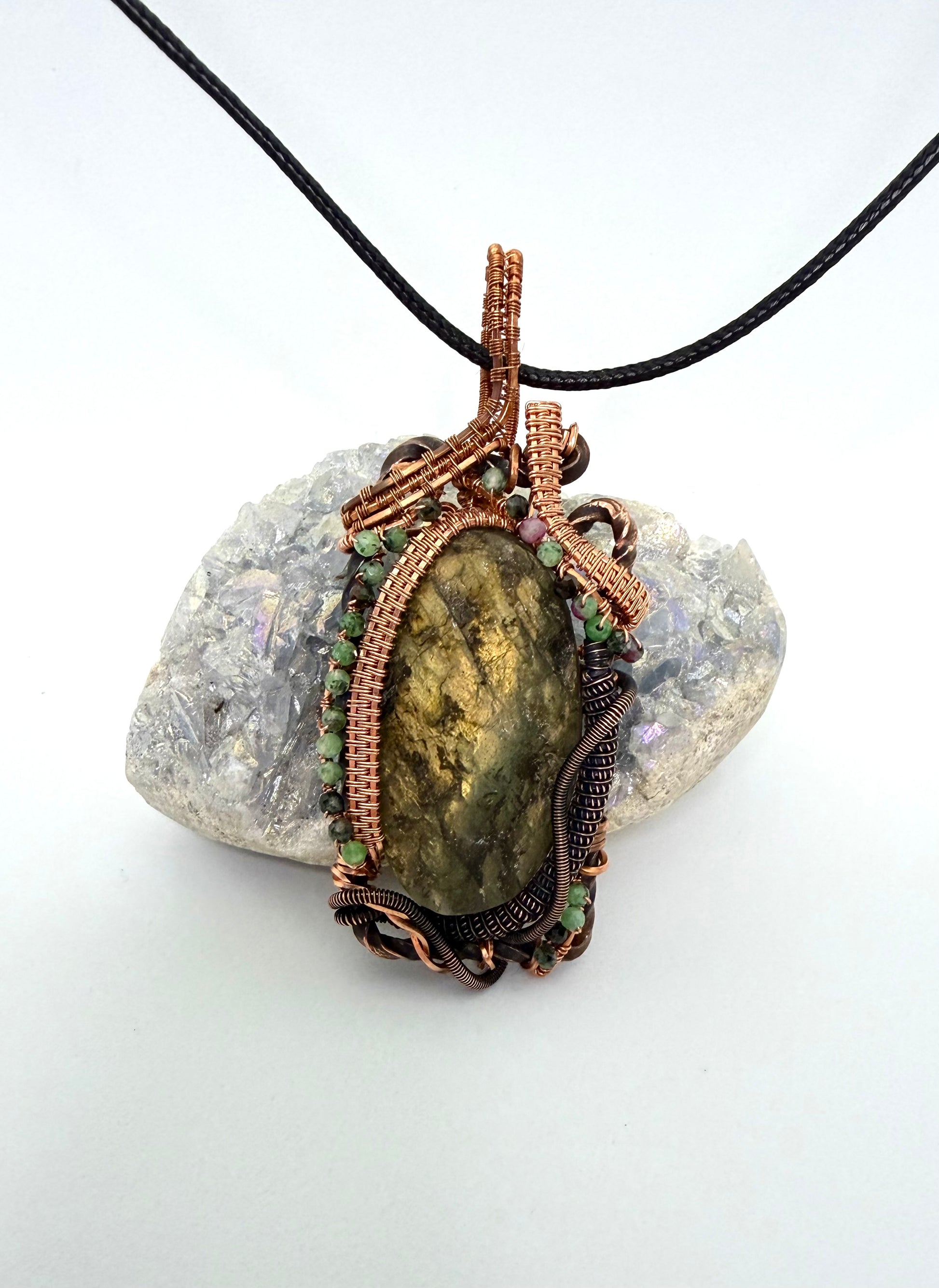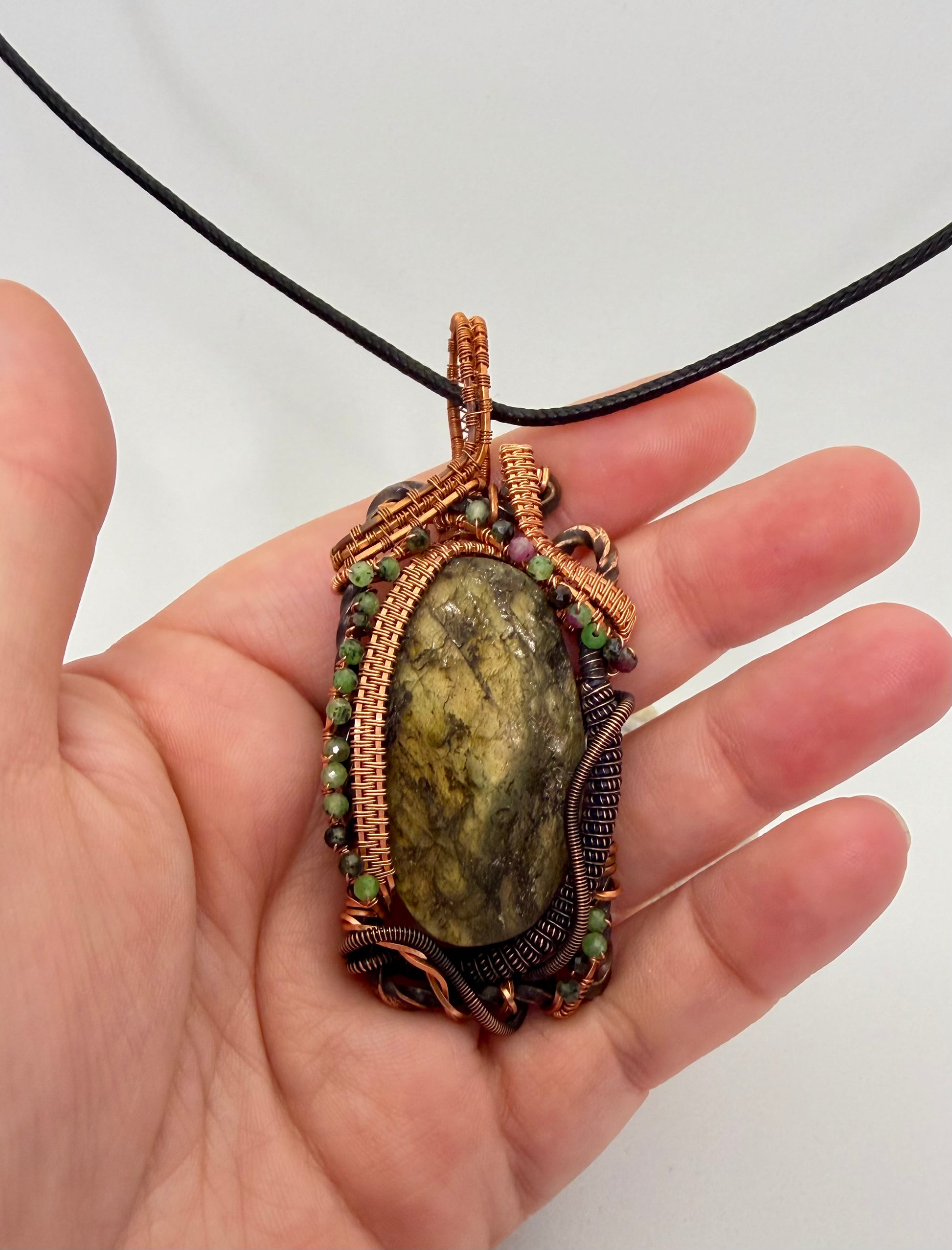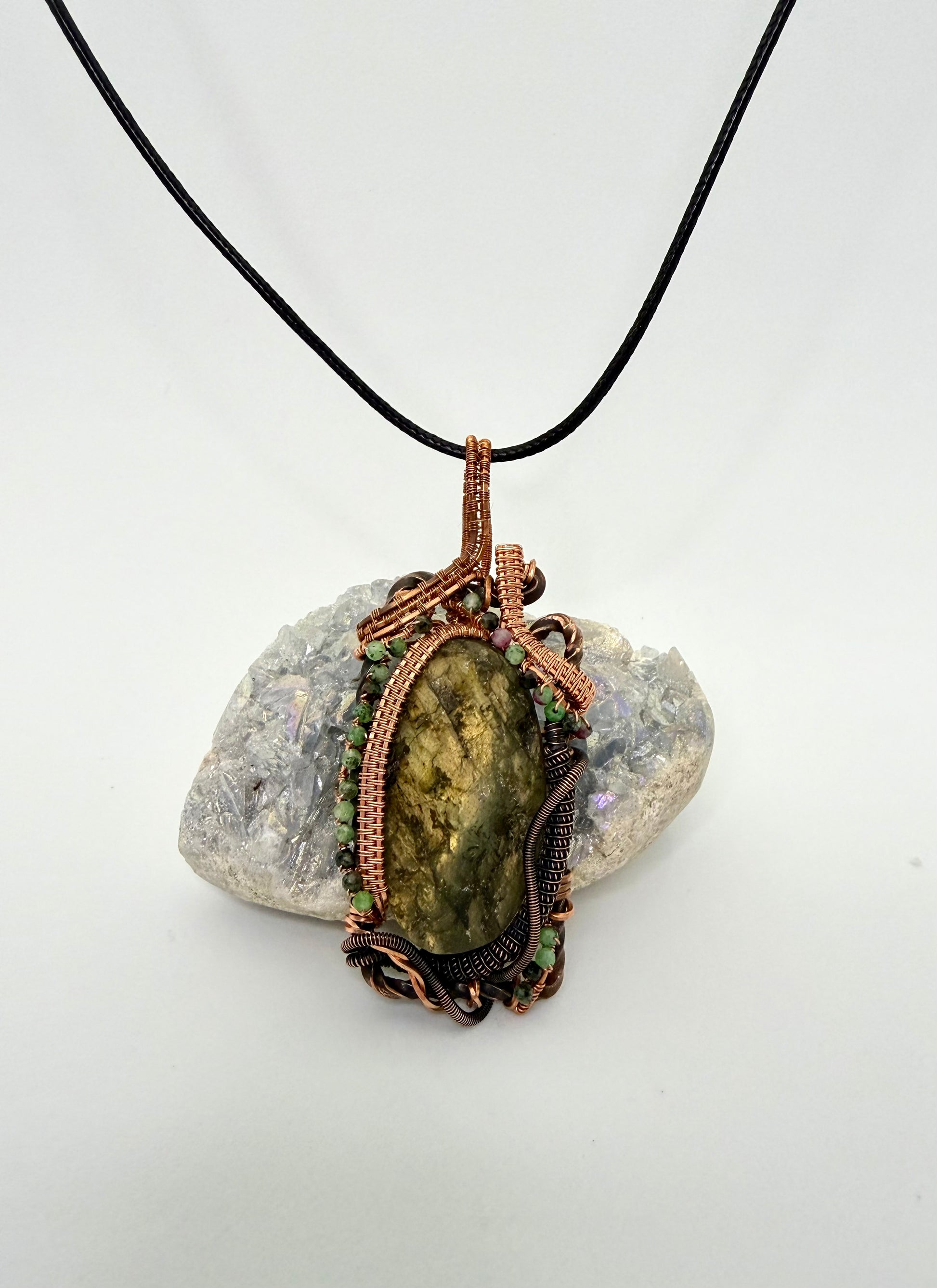 Boho Glow – Labradorite & Copper Wire Wrapped Pendant