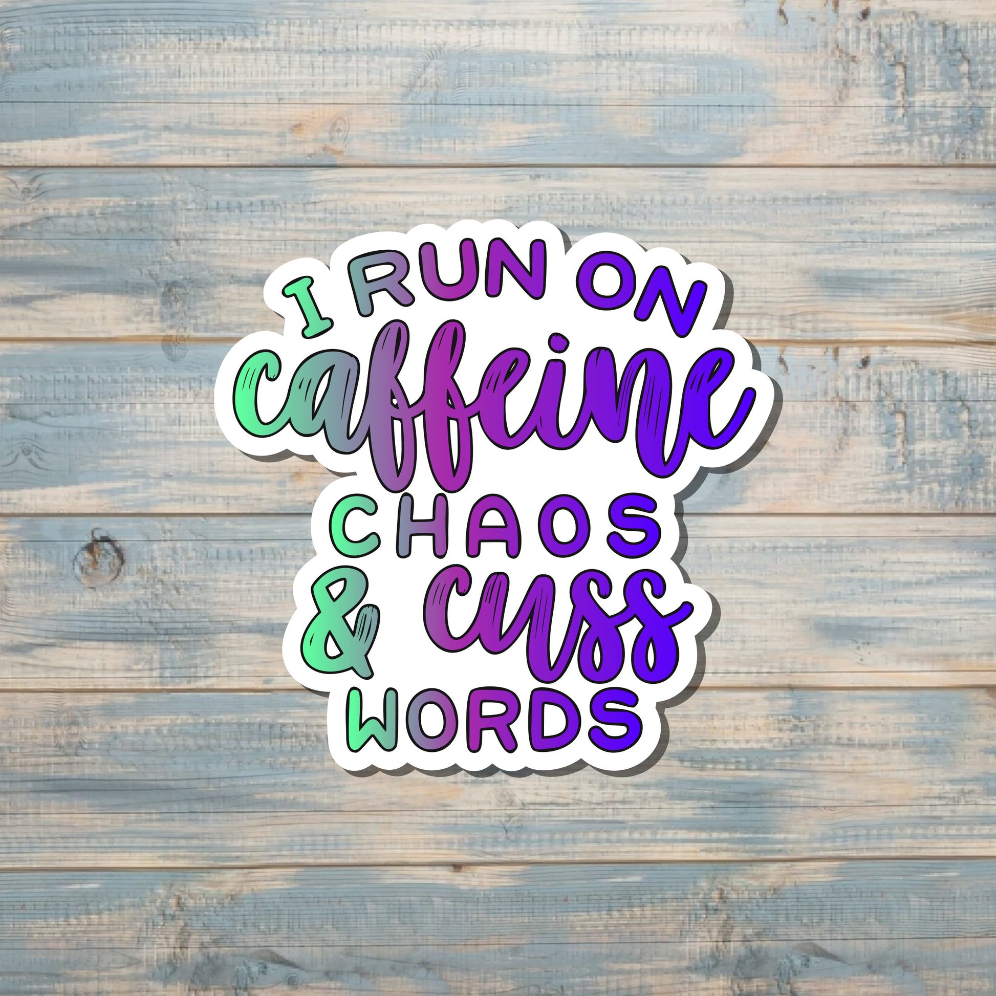 Caffeine and Cuss Words Sticker, Snarky Quote, Die Cut Sticker |Sticker or Magnet