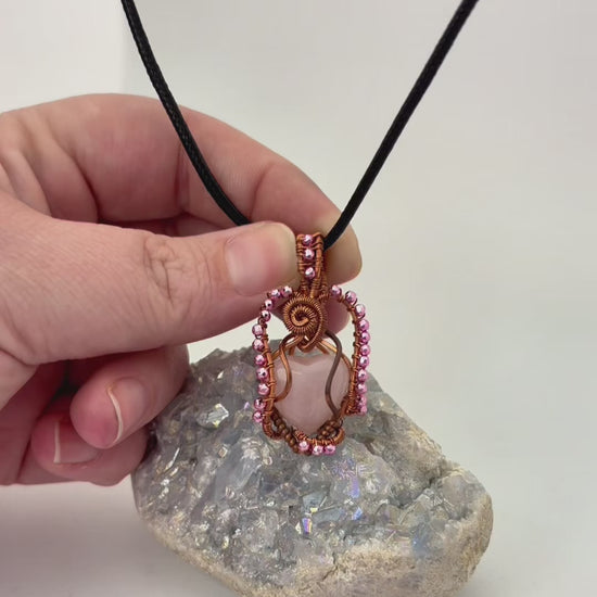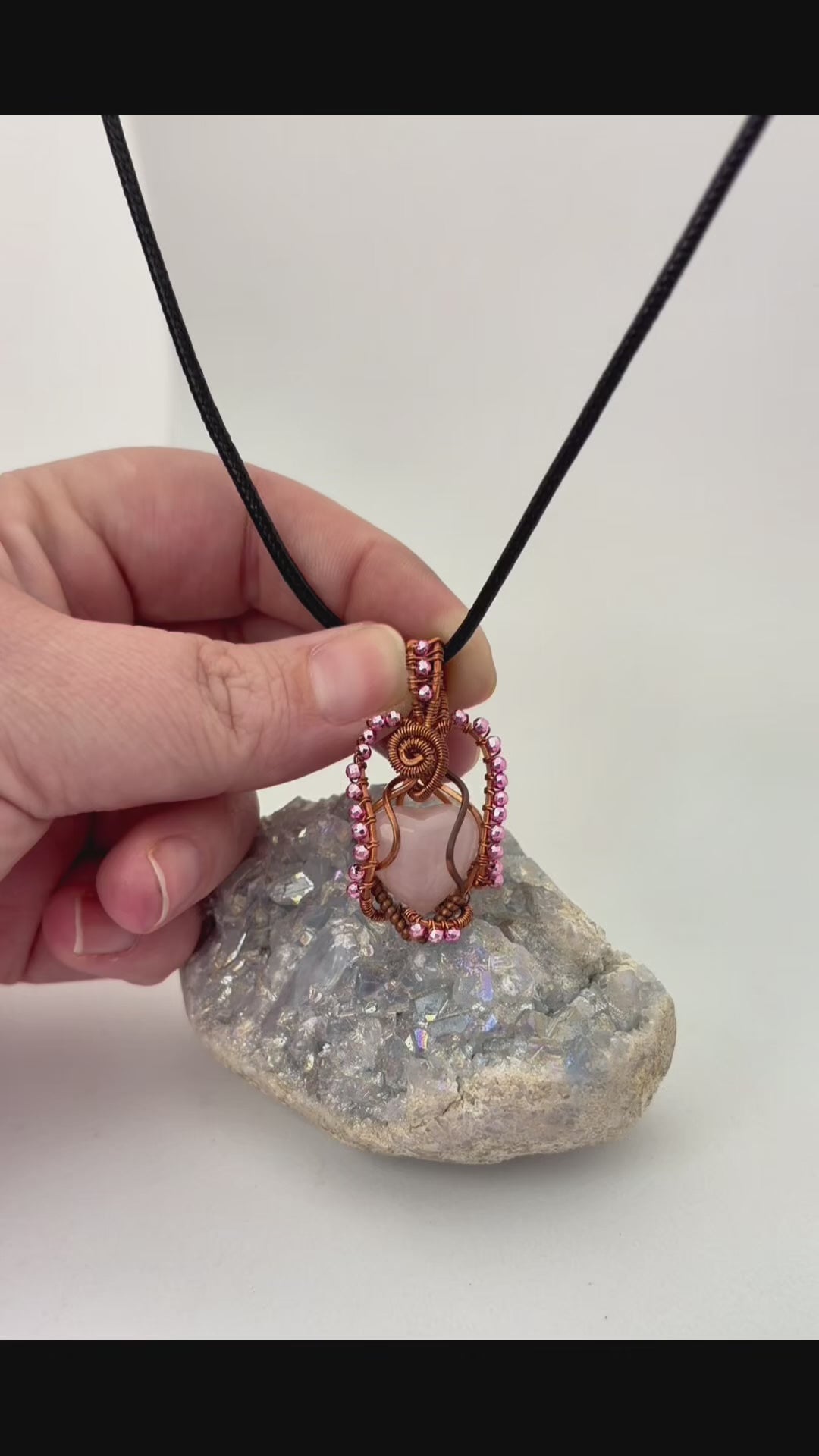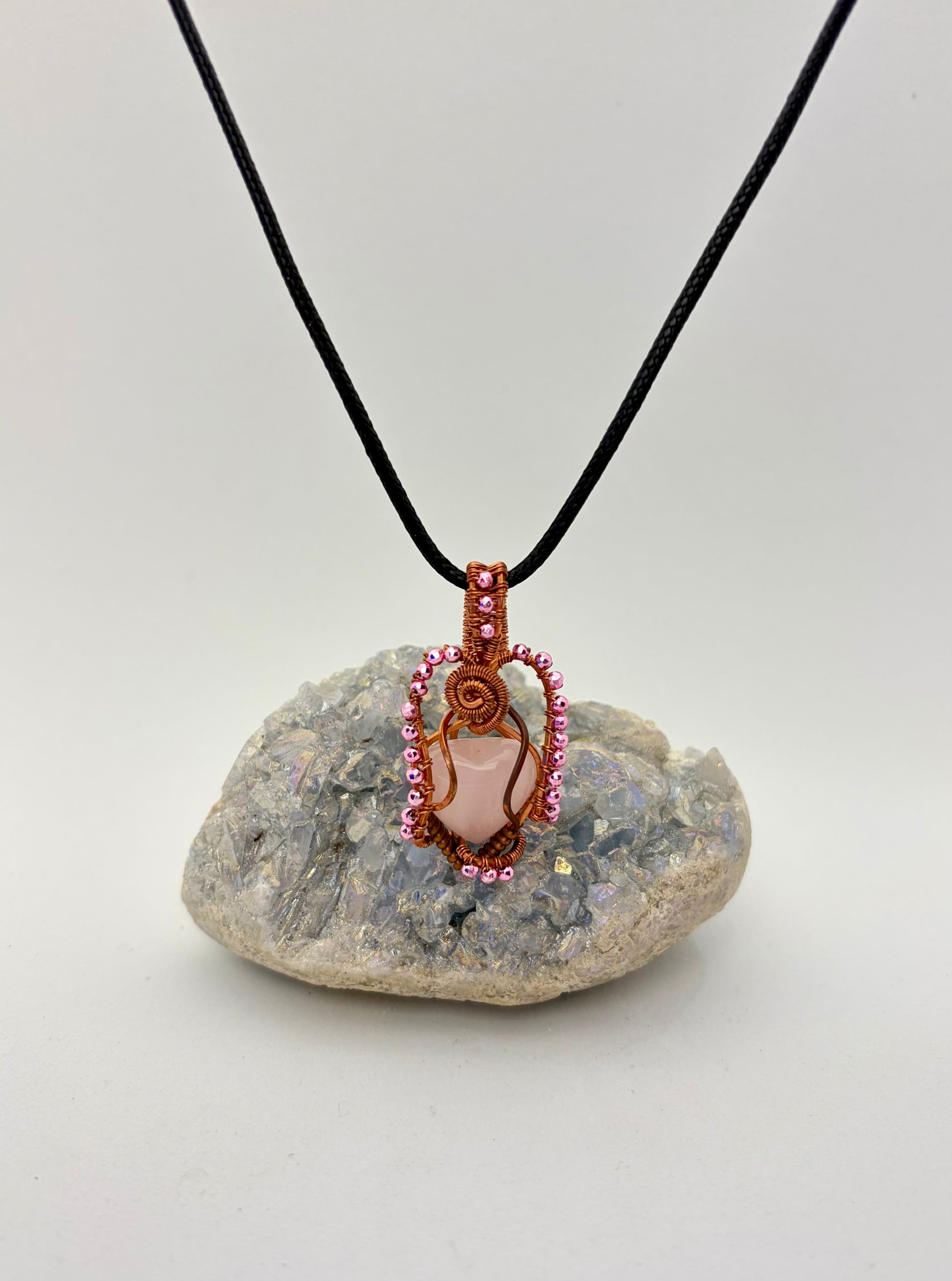 Handcrafted with copper wire, this necklace features a beautiful pink Rose Quartz heart, making it a perfect gift for yourself or a loved one. Spread the love with this one of a kind piece!