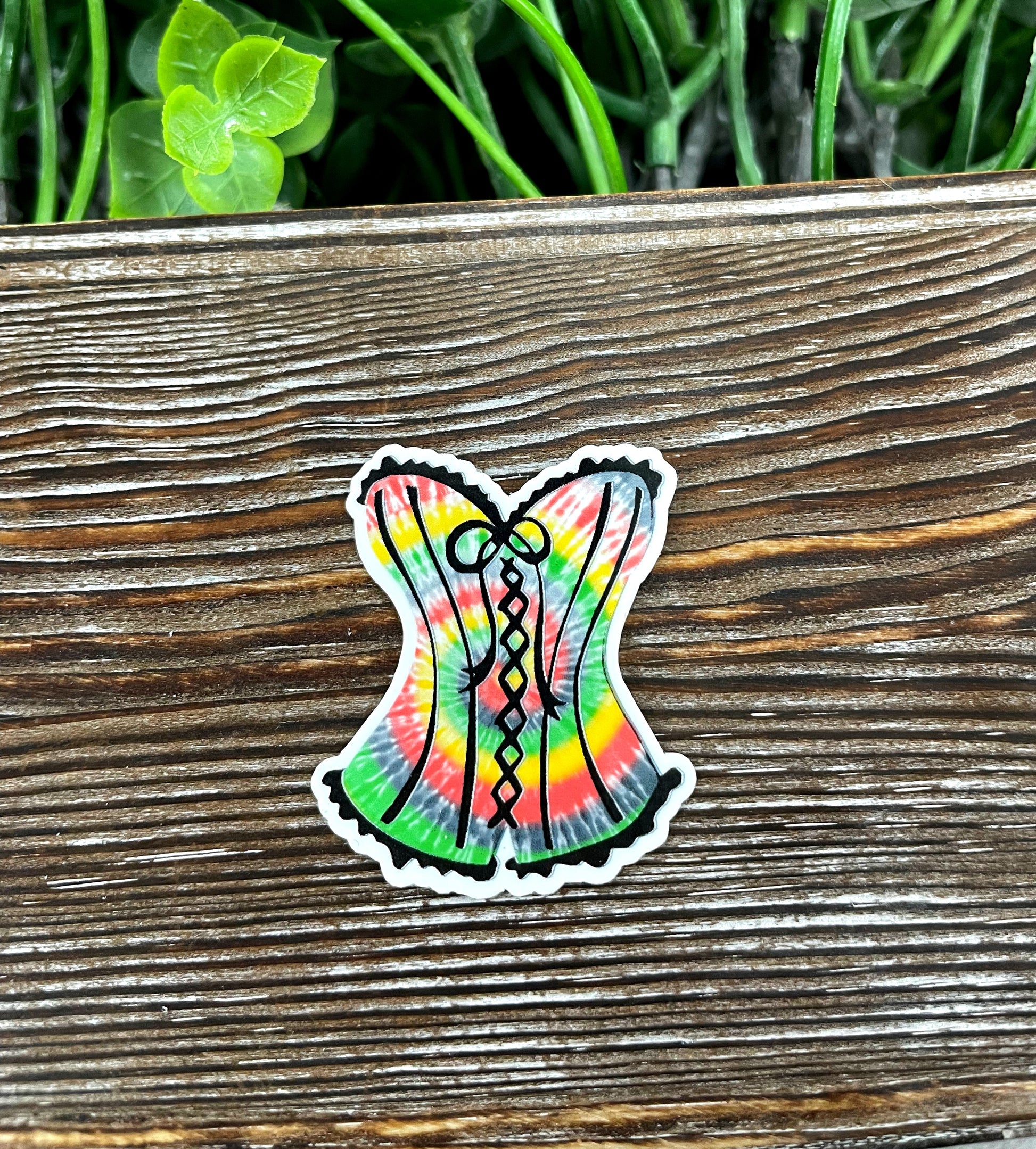 Tie Dye Corset Die Cut Sticker, Graphic Art Sticker, Vinyl, |Sticker or Magnet