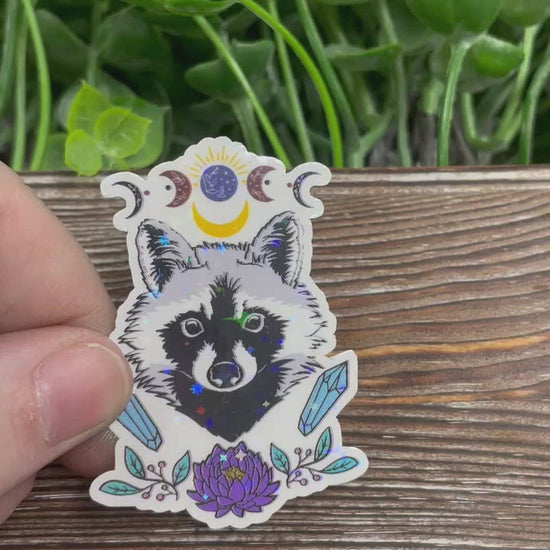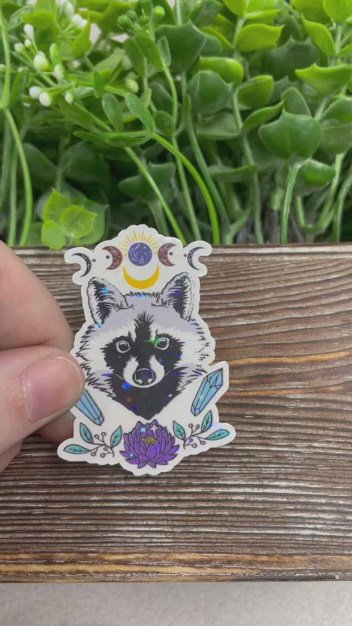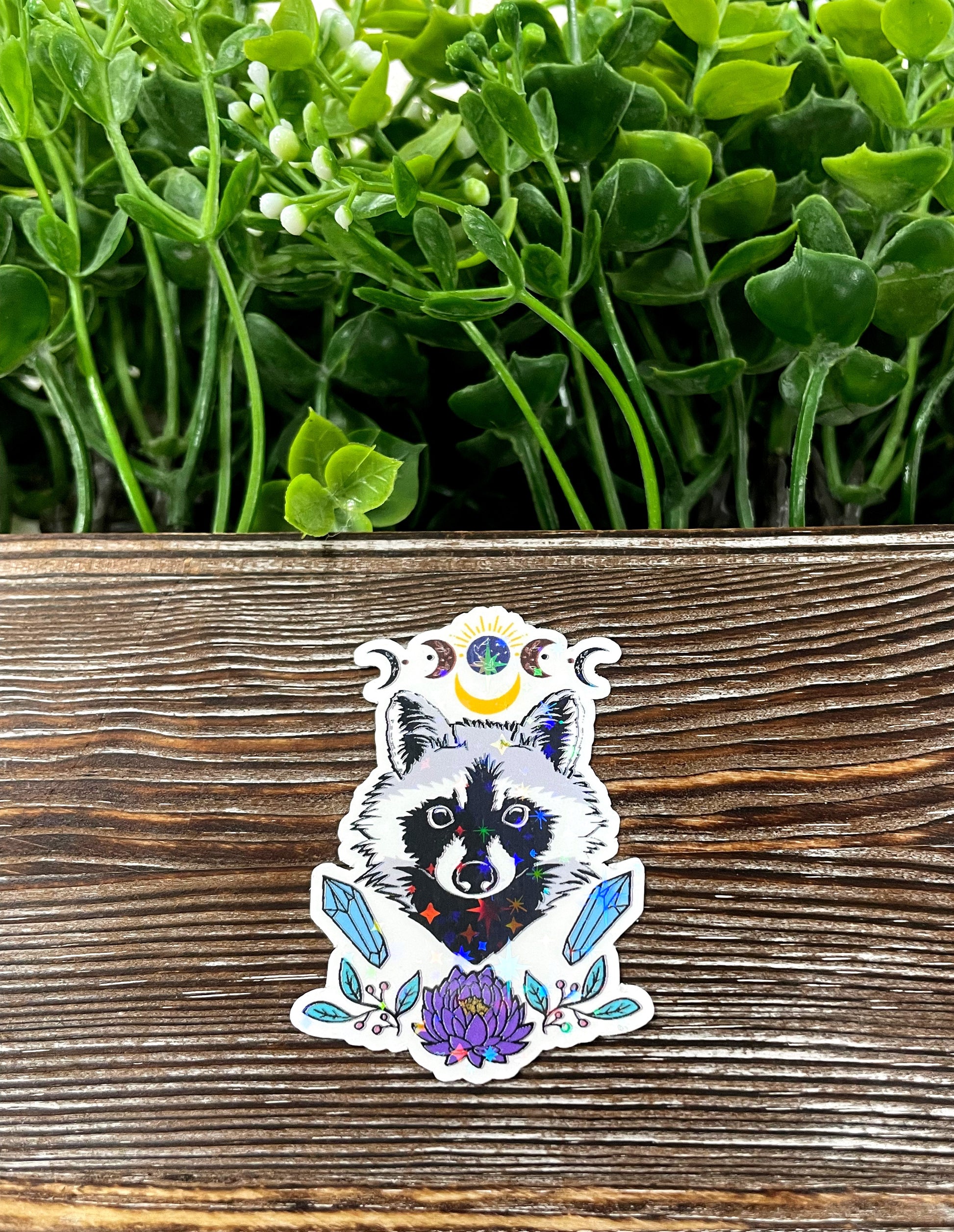 Racoon Crystals Moon Sticker, Graphic Art Sticker, Vinyl, Boho Hippie |Sticker or Magnet