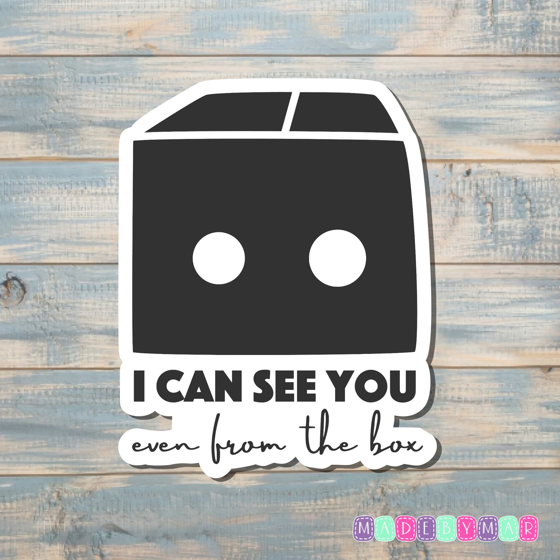 I Can See You even from the box | Sticker or Magnet | Cat Mom