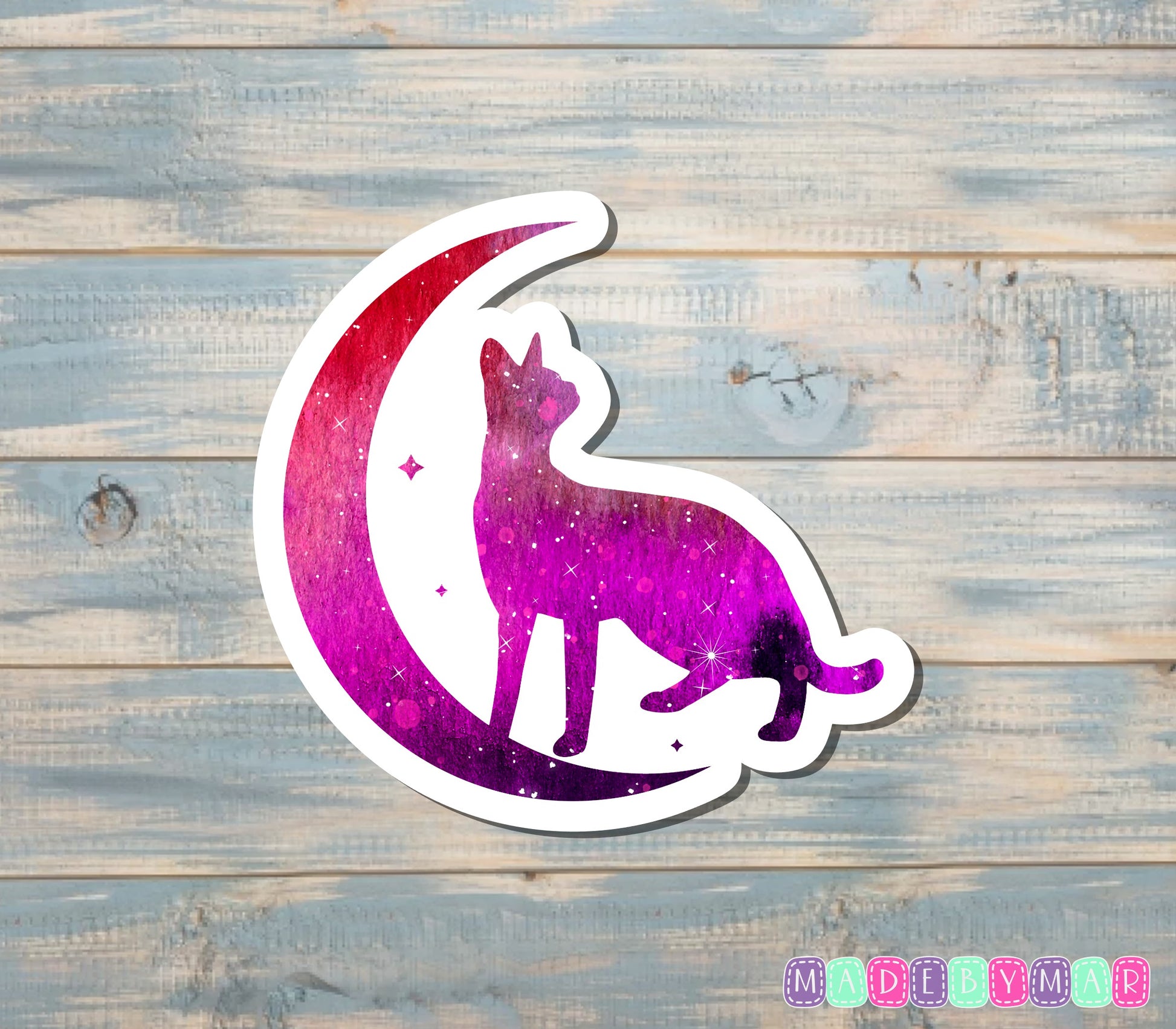 Purple Crescent Moon, Stars, and Cat Sticker |Sticker or Magnet