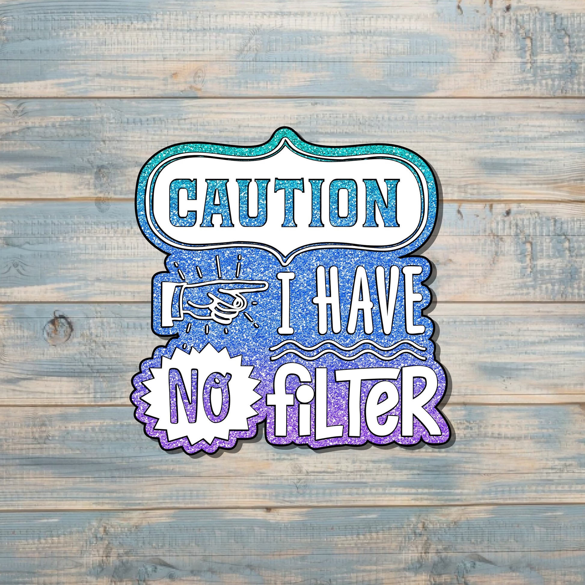 Caution I Have No Filter, Snarky Sarcasm Quote Sticker, Graphic Art Sticker, Vinyl Decal |Sticker or Magnet