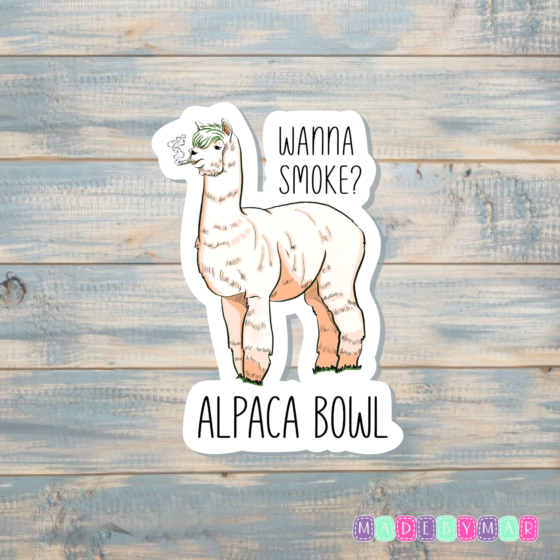 Wanna Smoke? Alpaca Bowl Weed Sticker |Sticker or Magnet | Marijuana Cannabis | Animal Pun