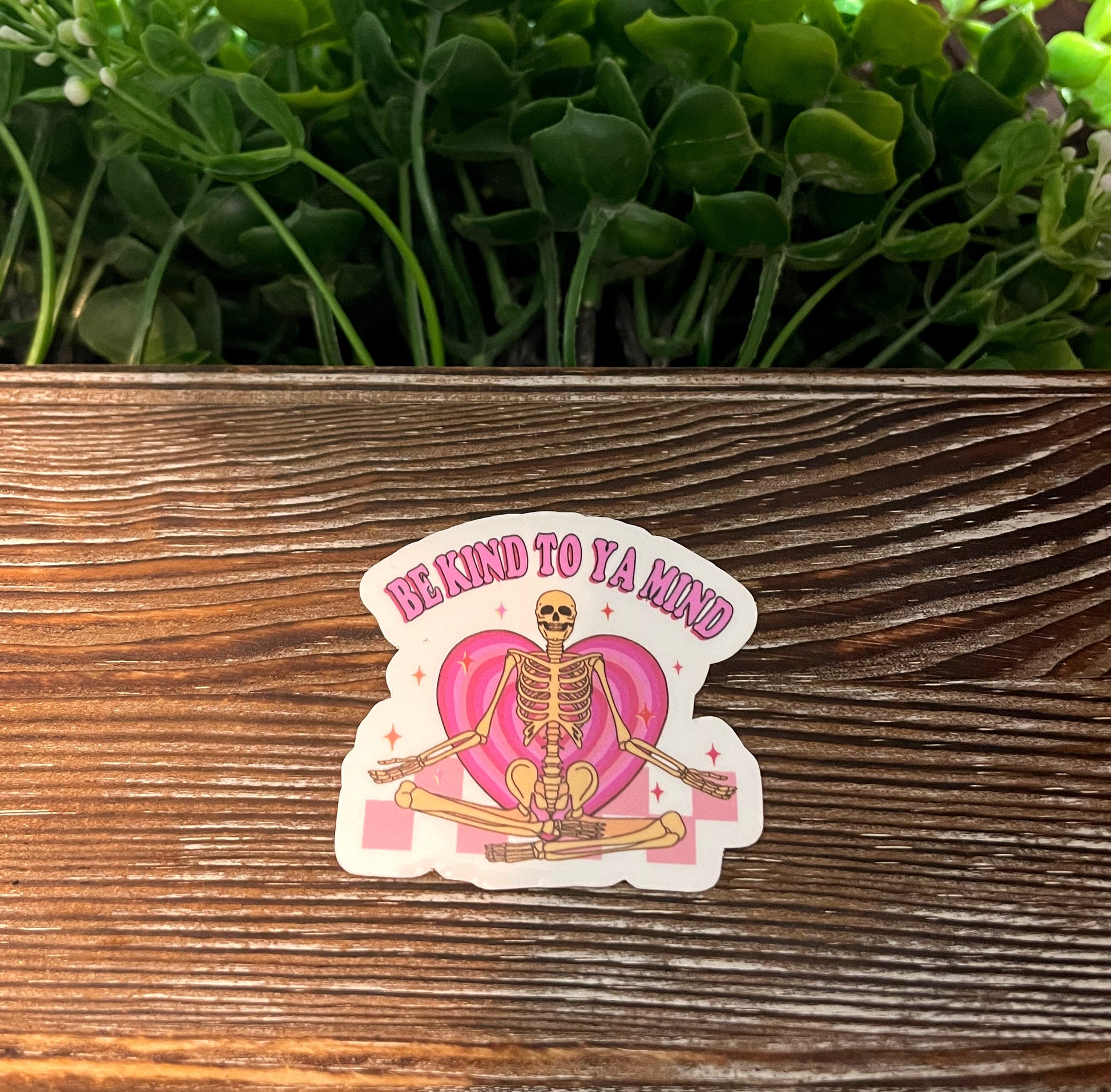 Be Kind to Ya Mind Skeleton |Lightweight Vinyl Sticker or Magnet |Refrigerator Fridge Car |Empowerment |Inspire Motivate |Self Esteem |Self Love |Sticker or Magnet