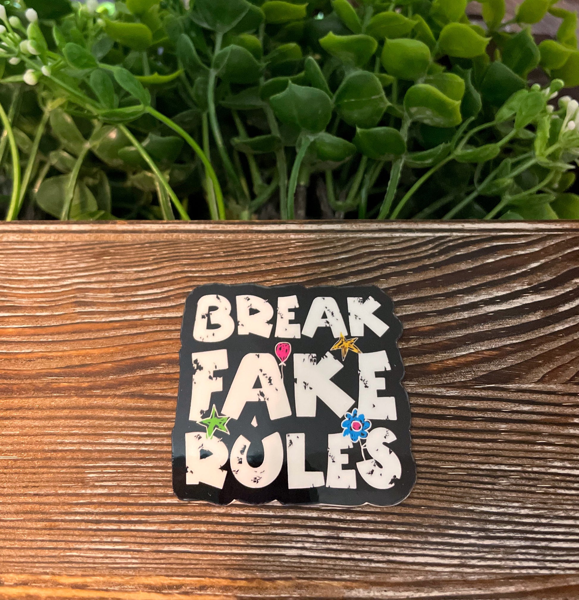 Break Fake Rules |Lightweight Vinyl Sticker or Magnet |Refrigerator Fridge Car |Empowerment |Inspire Motivate |Self Esteem |Self Love |Sticker or Magnet
