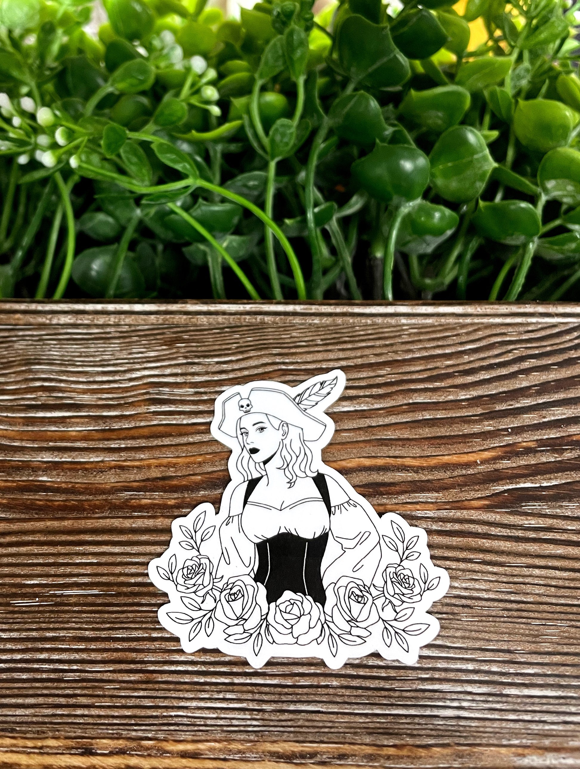 Pirate Wench, Die Cut Vinyl Sticker, Boho Fun, Water Resistant, Halloween Costume, Black and White |Sticker or Magnet
