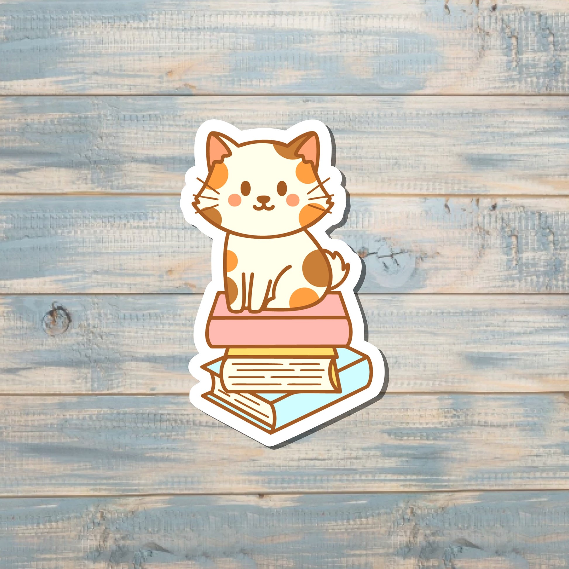 Cute Cat on Books Sticker |Sticker or Magnet