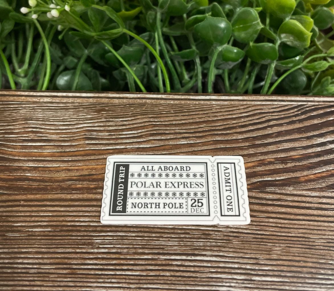 All Aboard Polar Express, Die Cut Vinyl Sticker, Boho Fun, Water Resistant, Winter Season Xmas, North Pole Ticket |Sticker or Magnet
