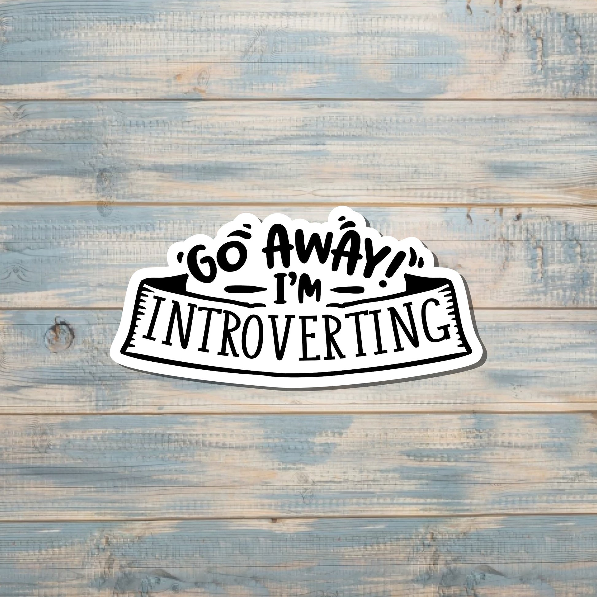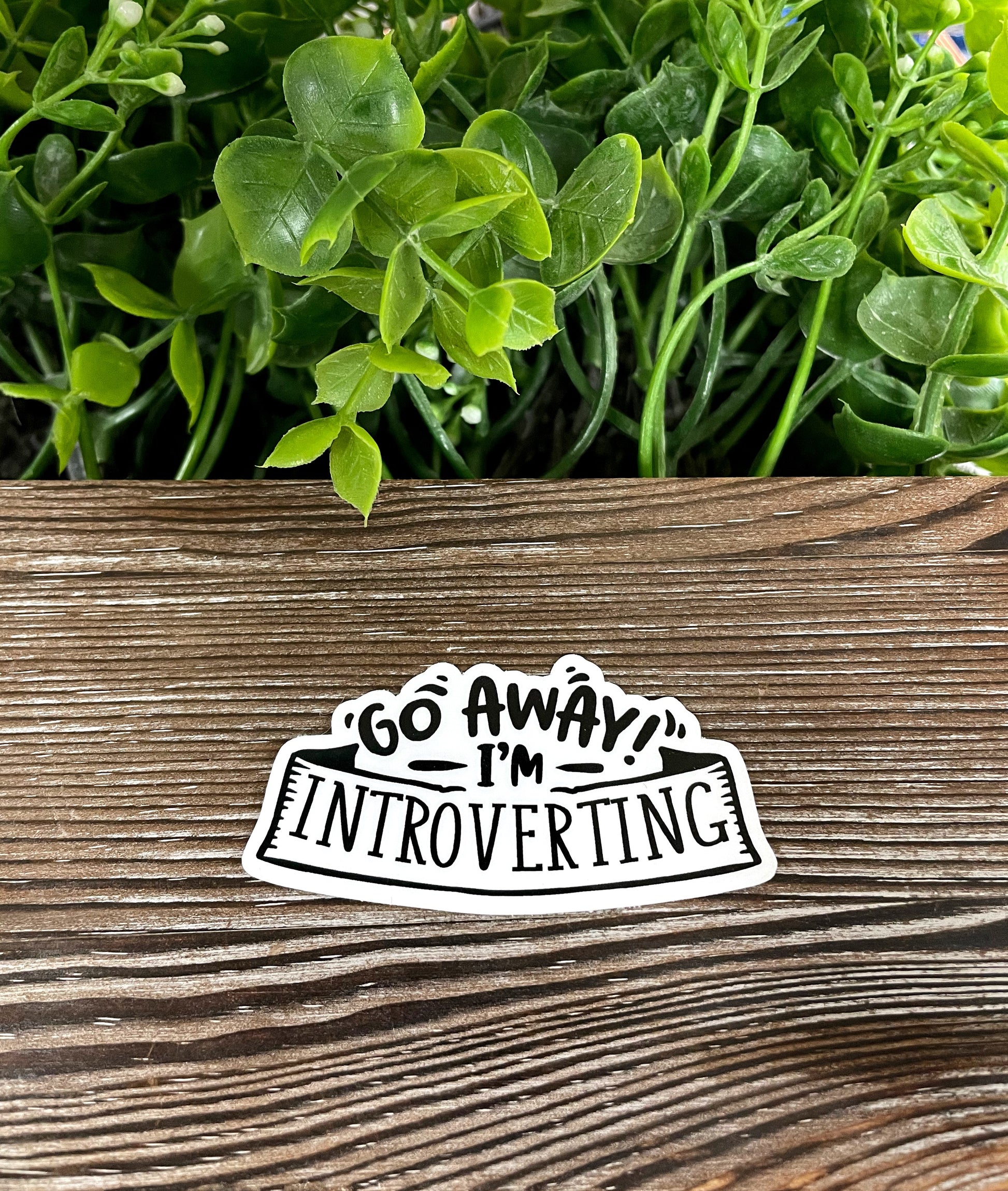 Go Away I'm Introverting Sticker, Die Cut Vinyl Sticker, Boho Fun, Water Resistant, Snarky Sarcasm Witty Quote, Funny Saying |Sticker or Magnet