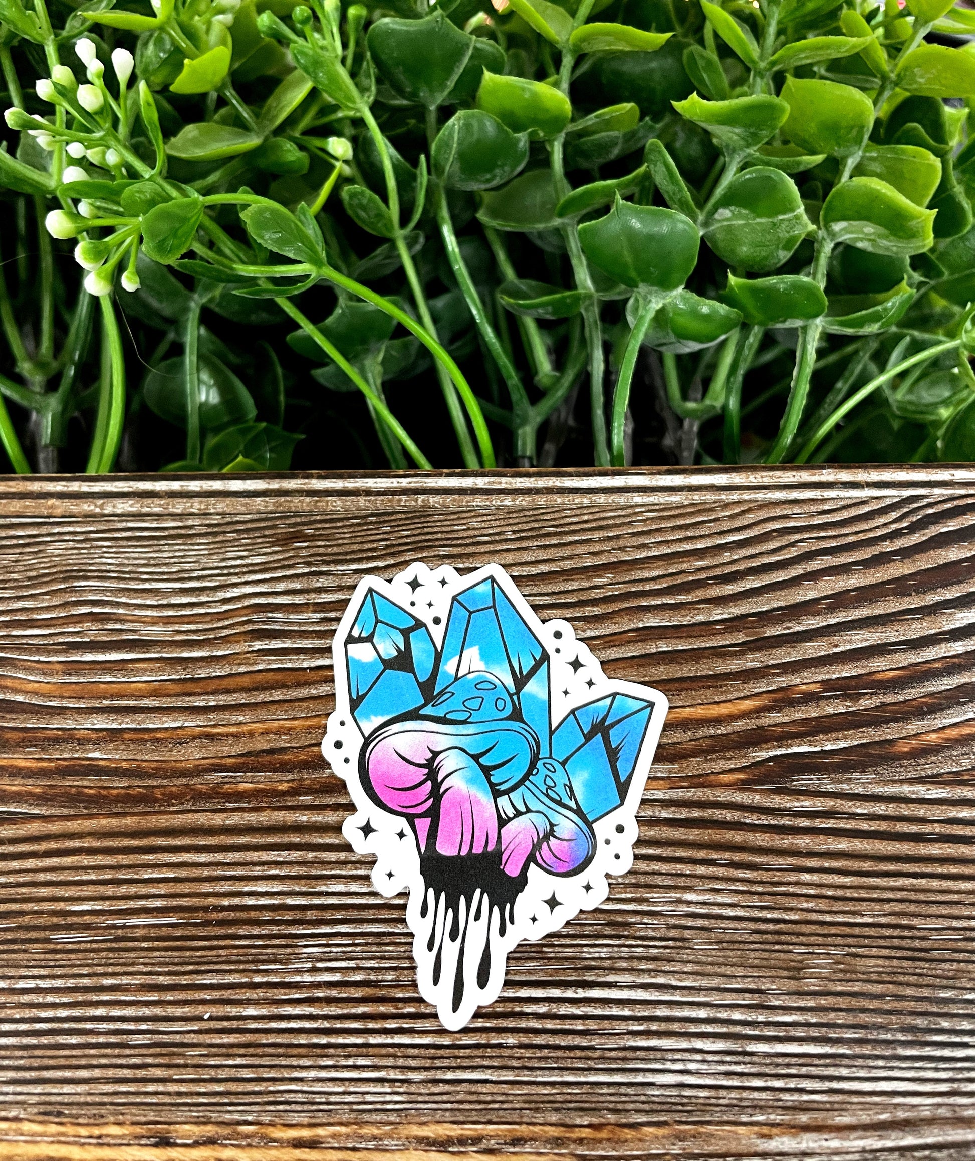 Mushrooms and Crystals, Purple and Blue Die Cut Vinyl Sticker, Boho Fun, Water Resistant |Sticker or Magnet