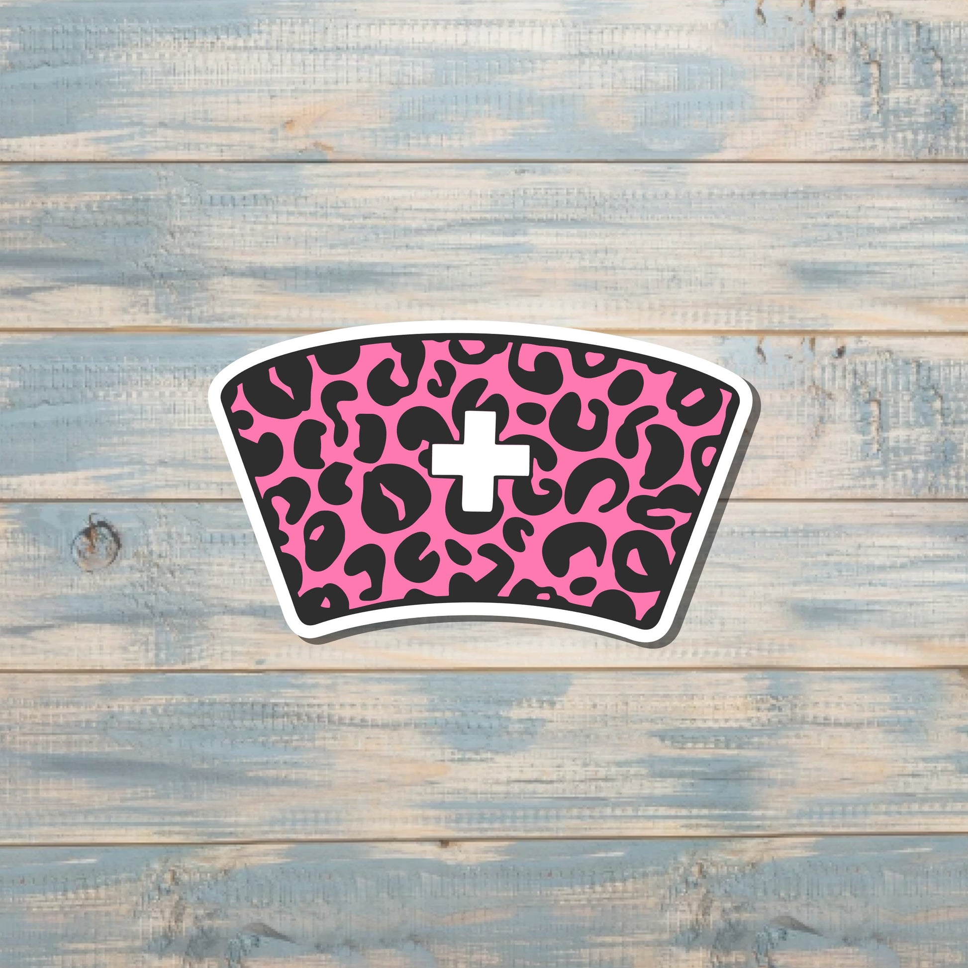 Pink Cheetah Print Nurse Cap, Die Cut Vinyl Sticker, , Boho Fun, Water Resistant |Sticker or Magnet