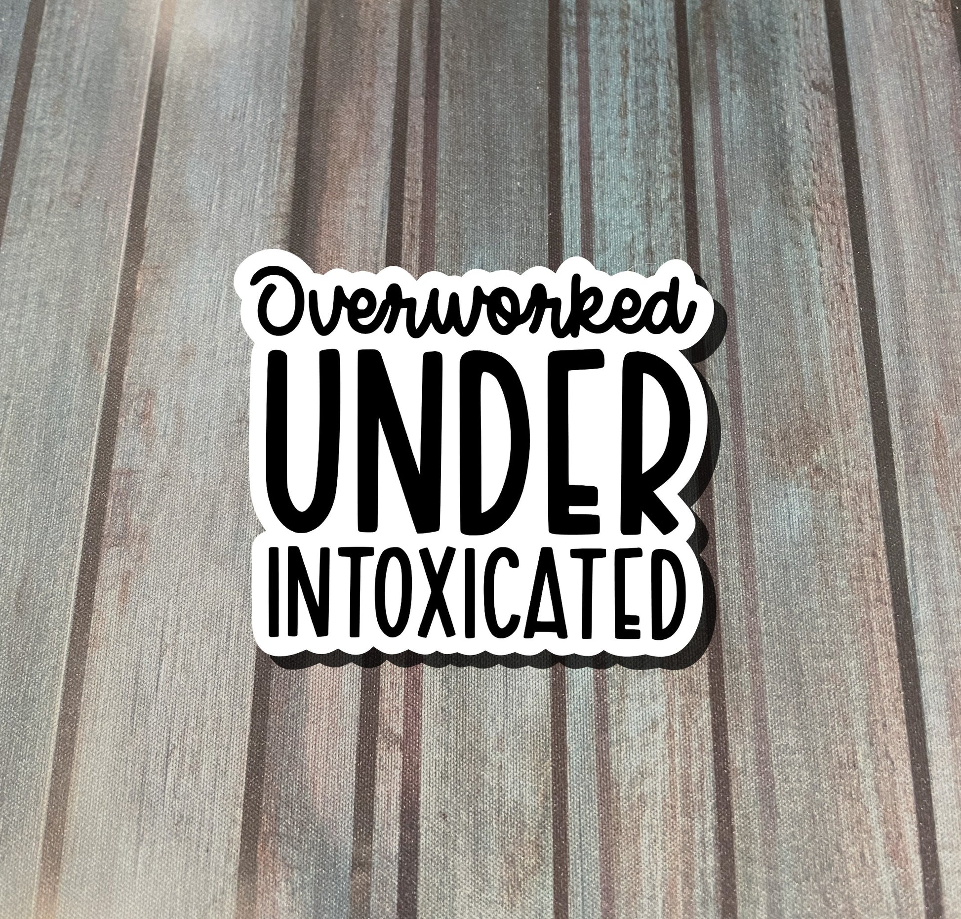 Overworked Under Intoxicated, Die Cut Vinyl Sticker, Water Resistant, Sarcasm Snarky Quote, Funny Humor, |Sticker or Magnet