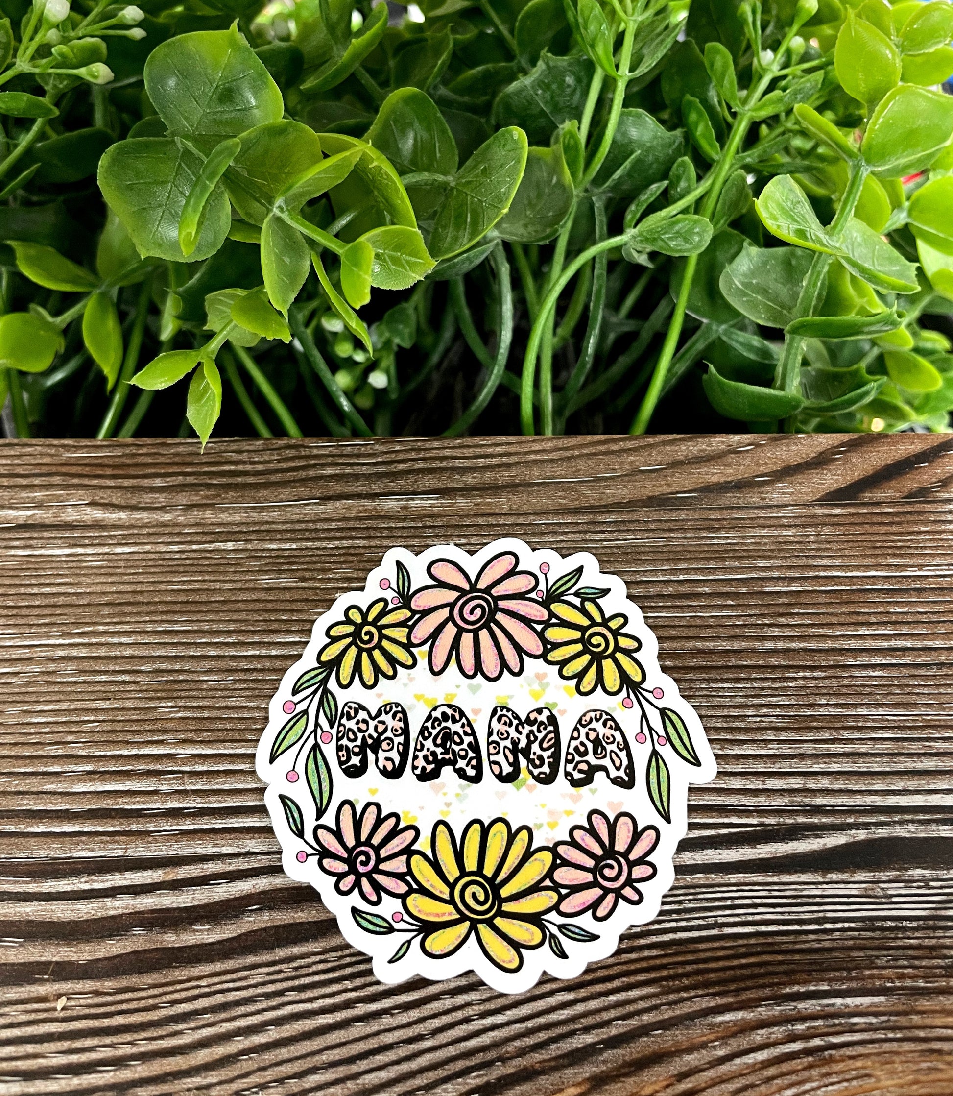 Mama Bright Flowers, Die Cut Vinyl Sticker, Boho Fun, Water Resistant, Cheetah Print |Sticker or Magnet