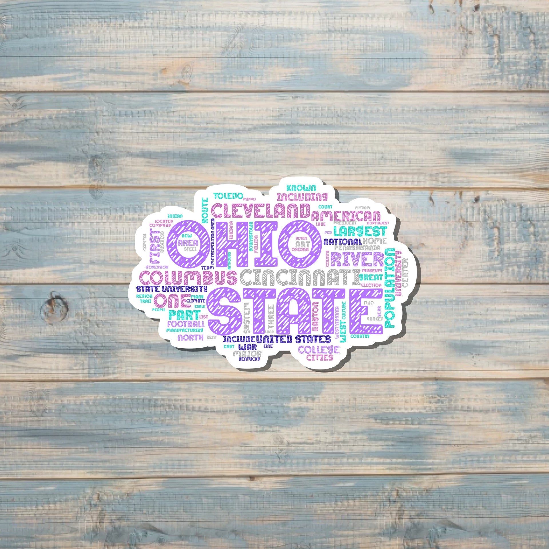 Ohio Word Cloud Sticker, Highlights Decal, State Laptop Stickers, Vinyl Stickers, Home Pride, Refrigerator Magnet, Locker Decor, Local Hometown, OH USA Outline, Columbus Cleveland |Sticker or Magnet