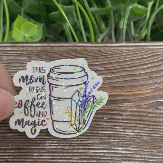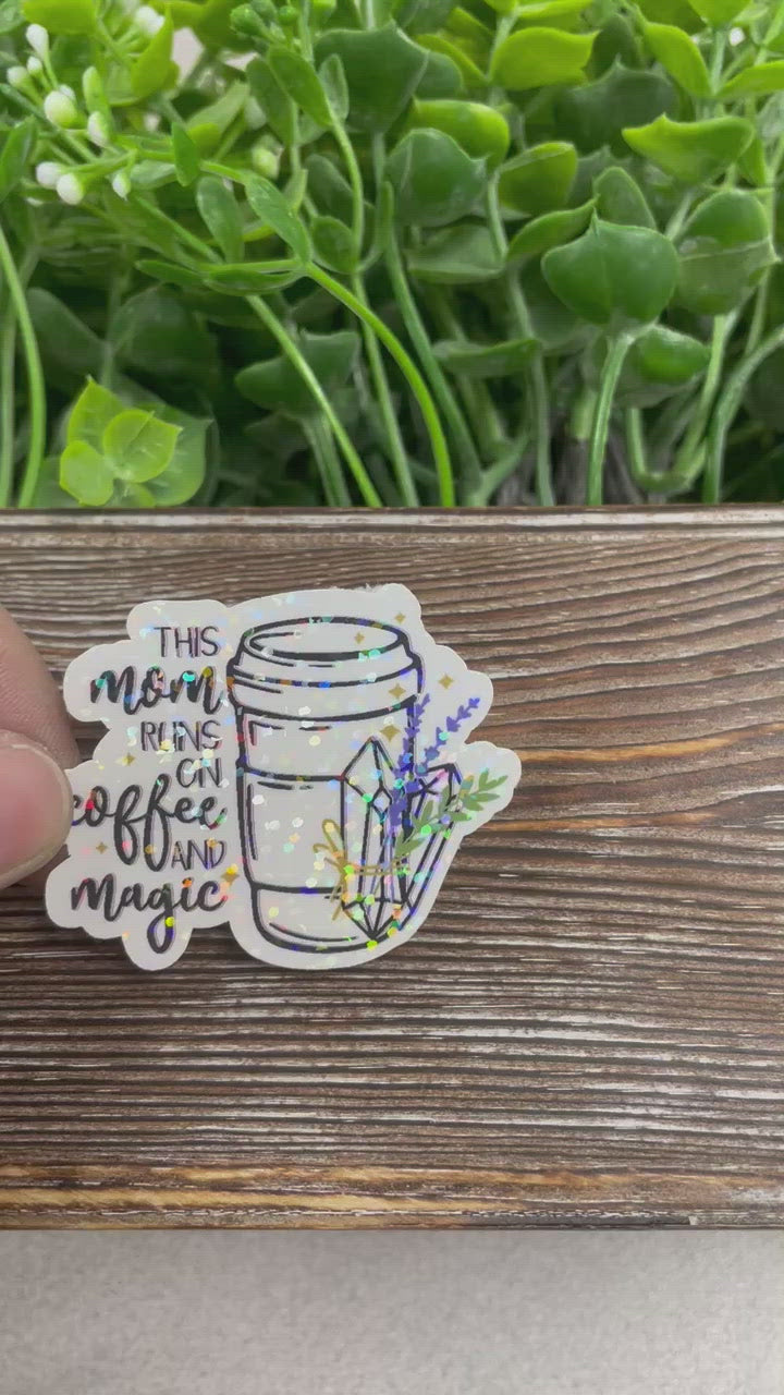 Sparkle Finish, This Mom Runs on Coffee and Magic, Die Cut Sticker, Graphic Art Sticker, Vinyl, , Boho Hippie |Sticker or Magnet