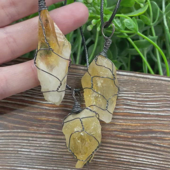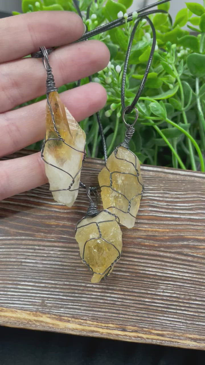 Wire Wrapped Rough Citrine Crystal Gemstone Chunk Pendant