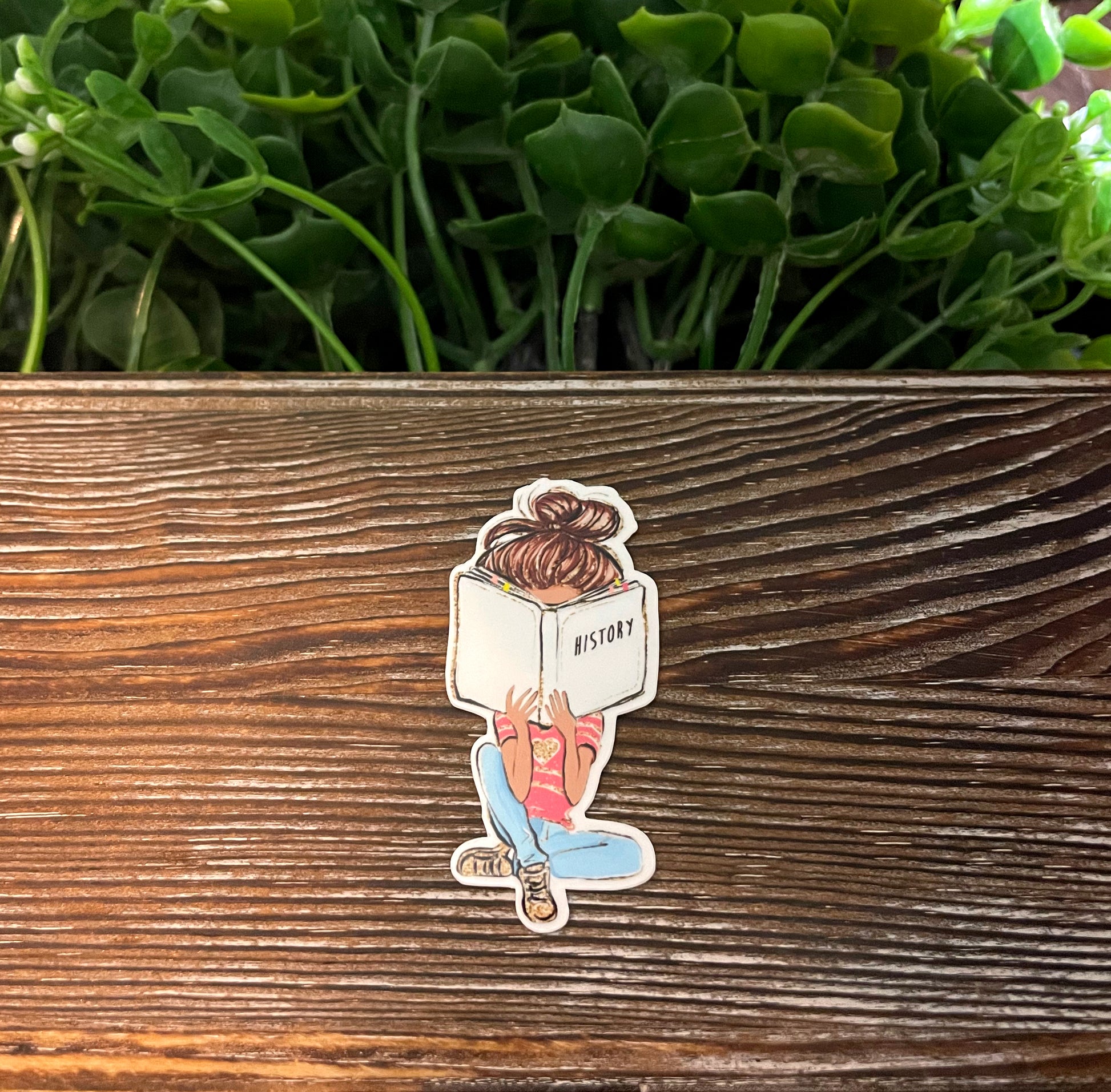 Girl Reading History Book, Vinyl Sticker, Water Resistant, Motivational Empower, Student College School, Teacher Textbooks |Sticker or Magnet