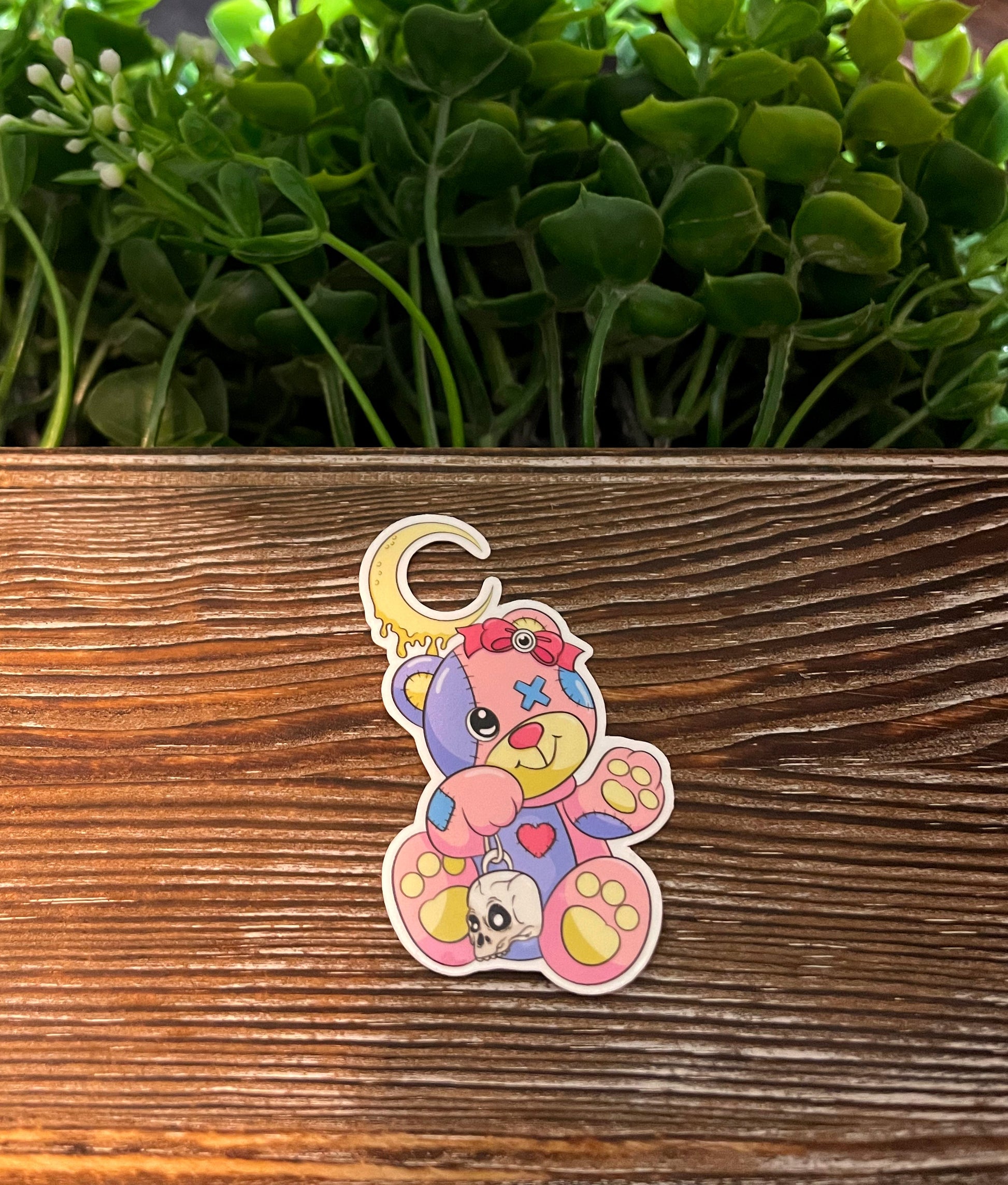 Creepy Cute Teddy Bear Sticker |Lightweight Vinyl Sticker or Magnet |Boho Fun |Refrigerator Fridge Car |Fantasy Mythical Creature |Gift for Girl. Pastel Colors |Sticker or Magnet