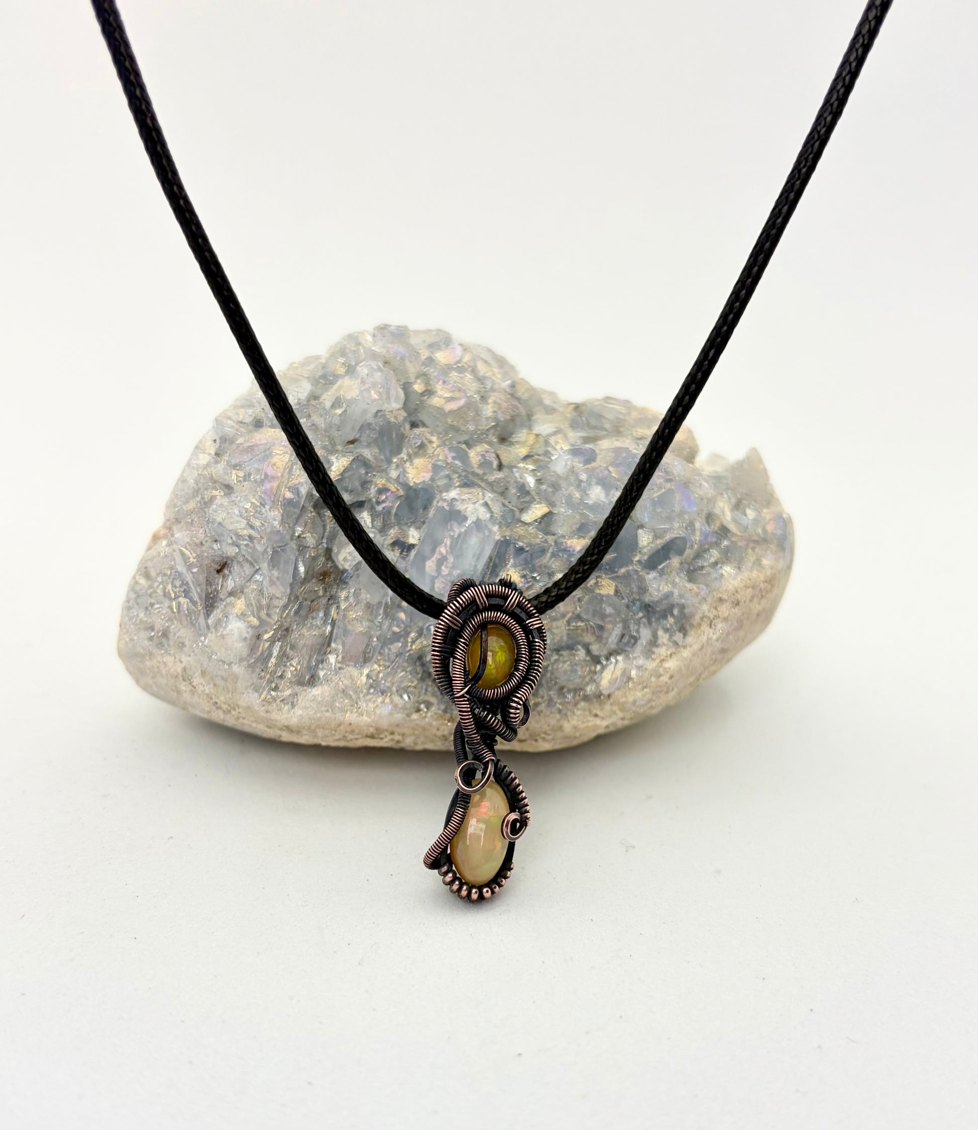 Double Trouble Opal – Copper Wire Wrapped Necklace
