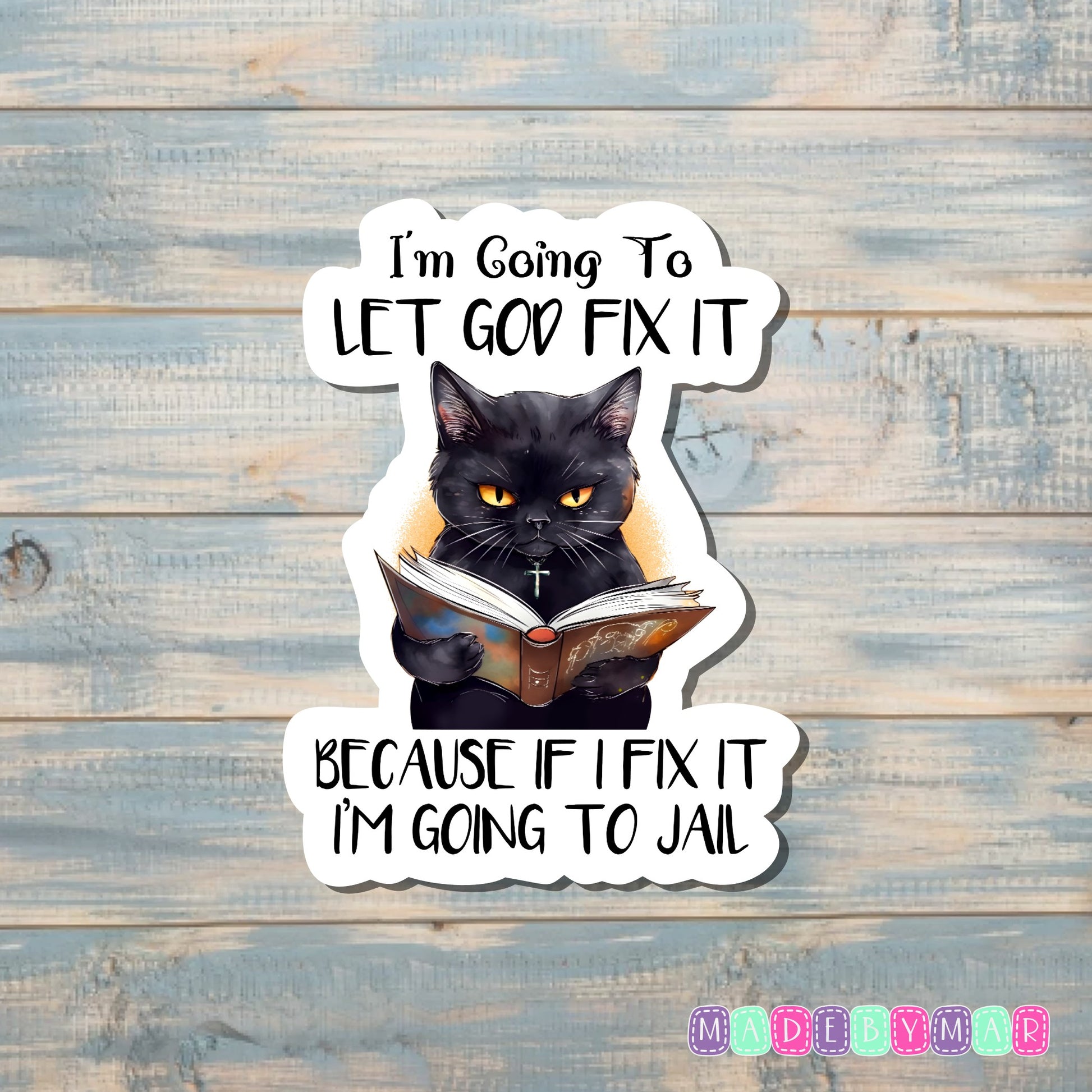 I'm Going to let God Fix it Because If I Fix I'm Going to Jail | Sticker or Magnet | Funny Animal Pun
