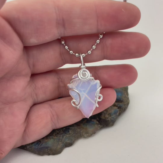 Moonlit Arrow – Opalite Arrowhead Wrapped in Silver Aluminum Wire