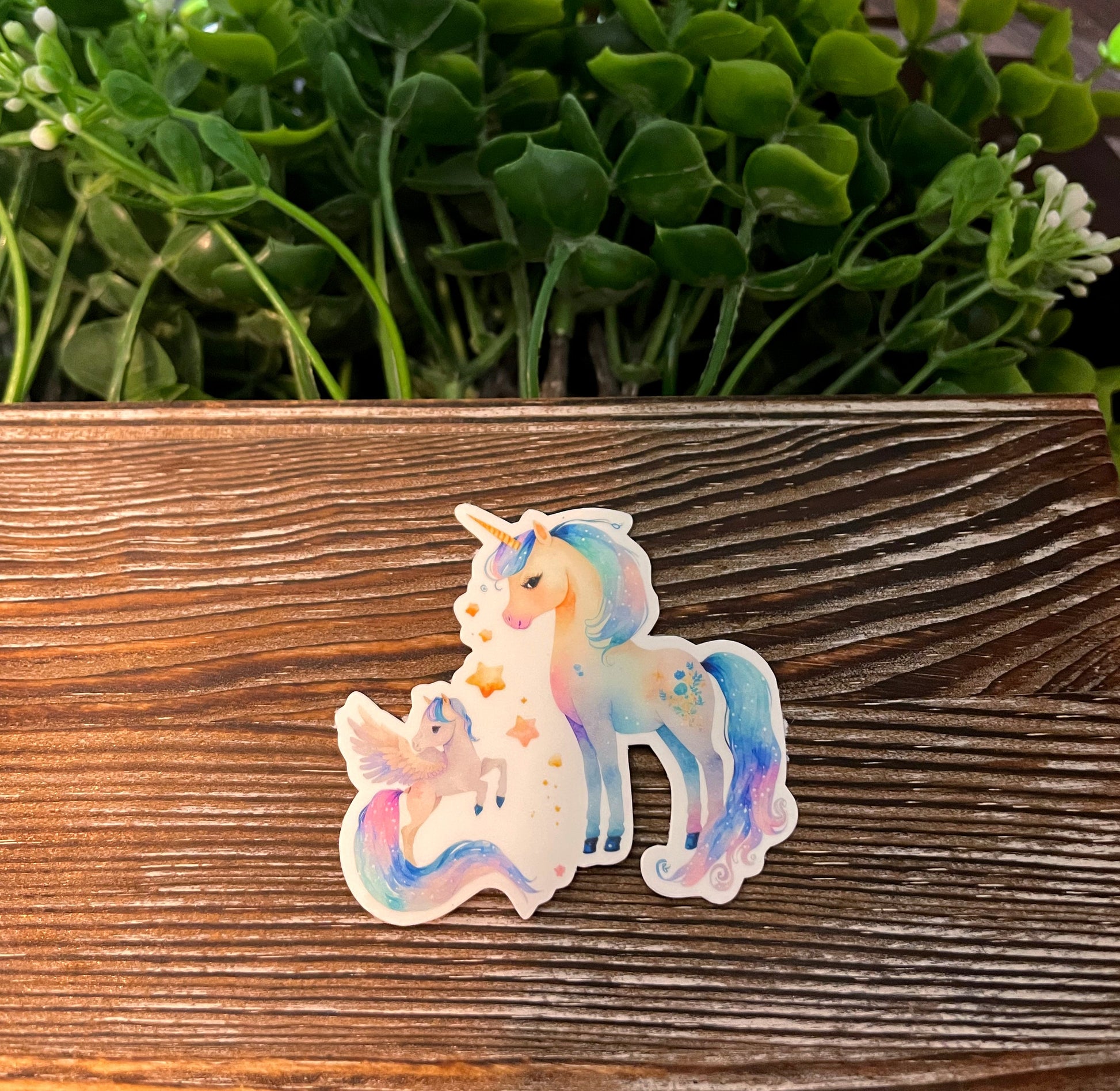 Mother and Baby Unicorn |Lightweight Vinyl Sticker or Magnet |Boho Fun |Refrigerator Fridge Car |Fantasy Mythical Creature |Gift for Girl |Purple and Gold |Sticker or Magnet