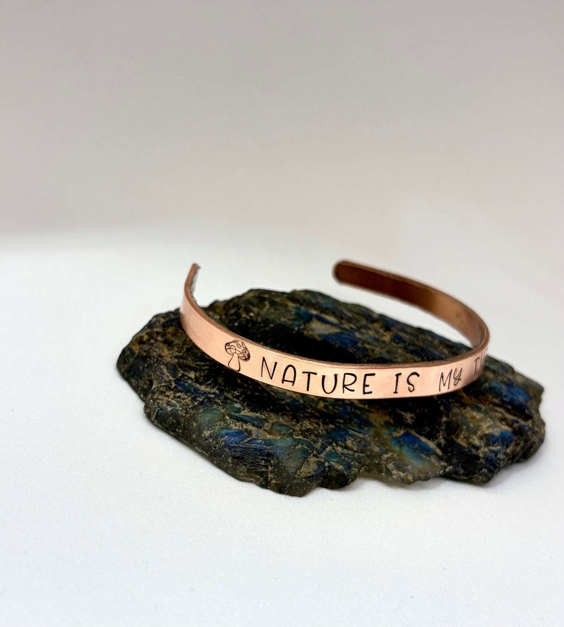 Nature Is My Therapy Bracelet – Rustic Hand-Stamped Copper Cuff