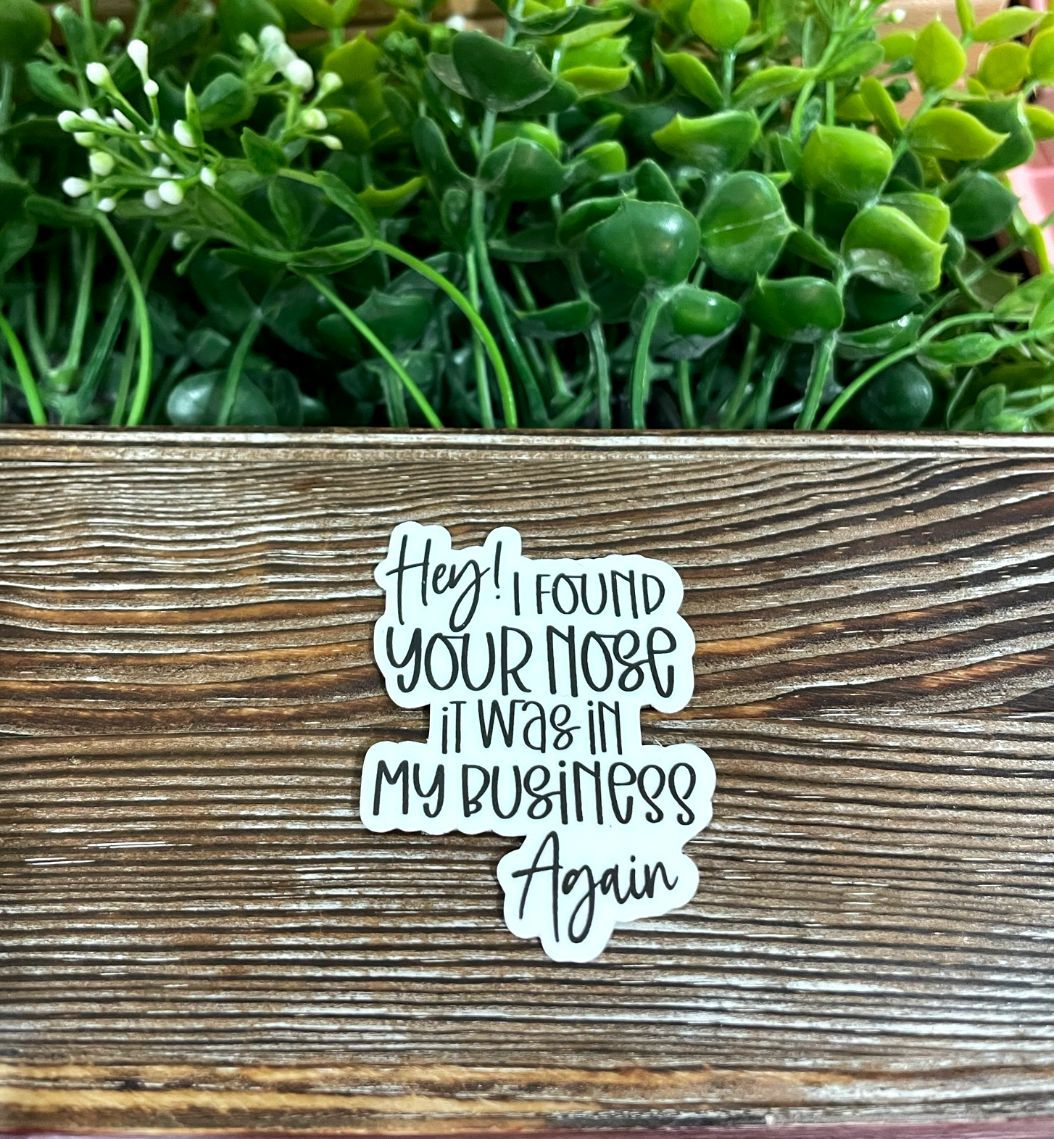 Nose In My Business Again |Lightweight Vinyl Sticker or Magnet |Sarcasm Quote |Funny Humor |Refrigerator Fridge Car |Adult Snarky |Sticker or Magnet