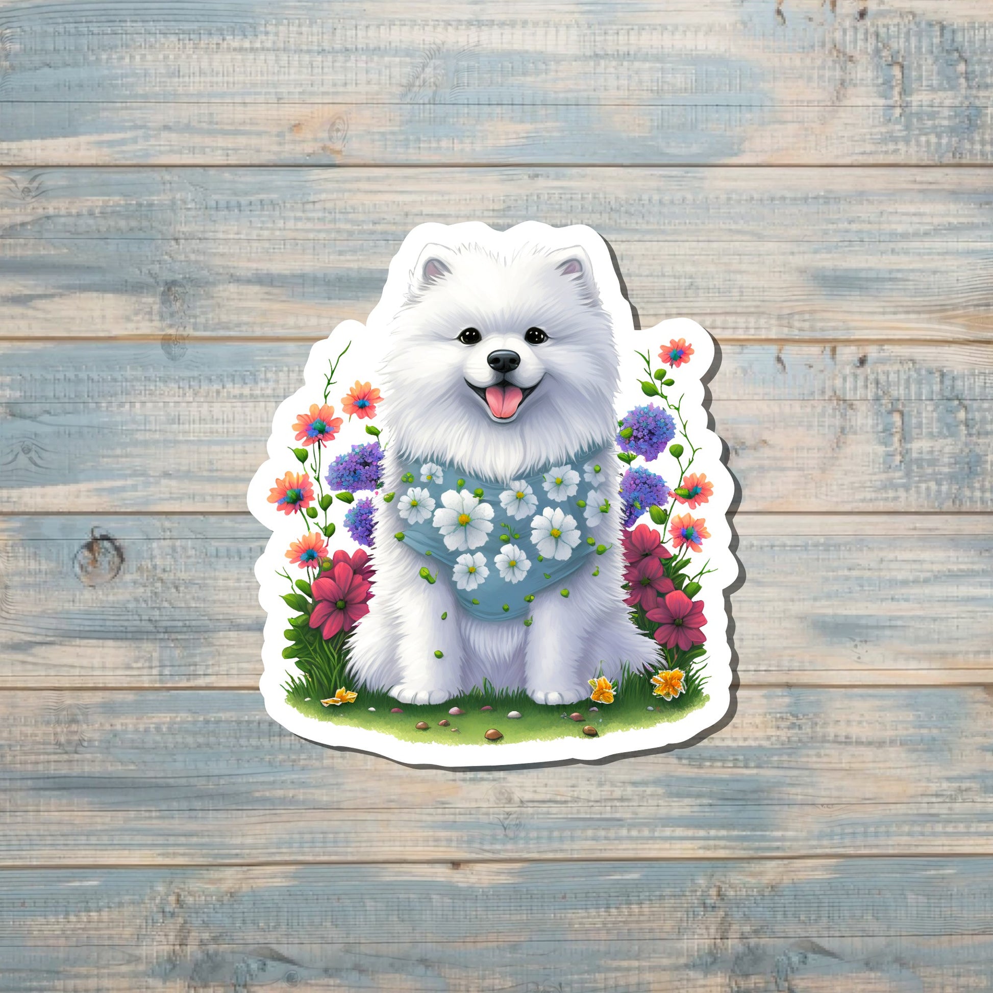 Samoyed Sticker w/ Flowers |Lightweight Vinyl Sticker or Magnet |Boho Fun |Refrigerator Fridge Car |Dog Mom Animal Lover |Pet Breed |Sticker or Magnet