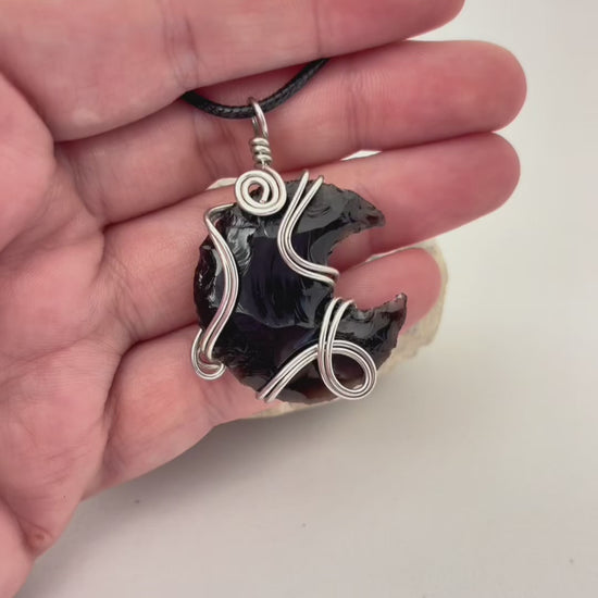 Shadow Spark” – Stainless Steel Wire Wrapped Obsidian Necklace