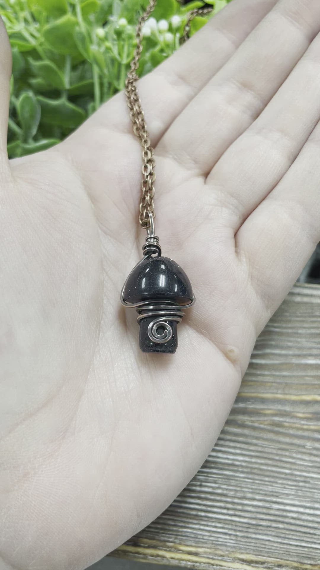 Wire Wrapped Mushroom Gemstone Pendant
