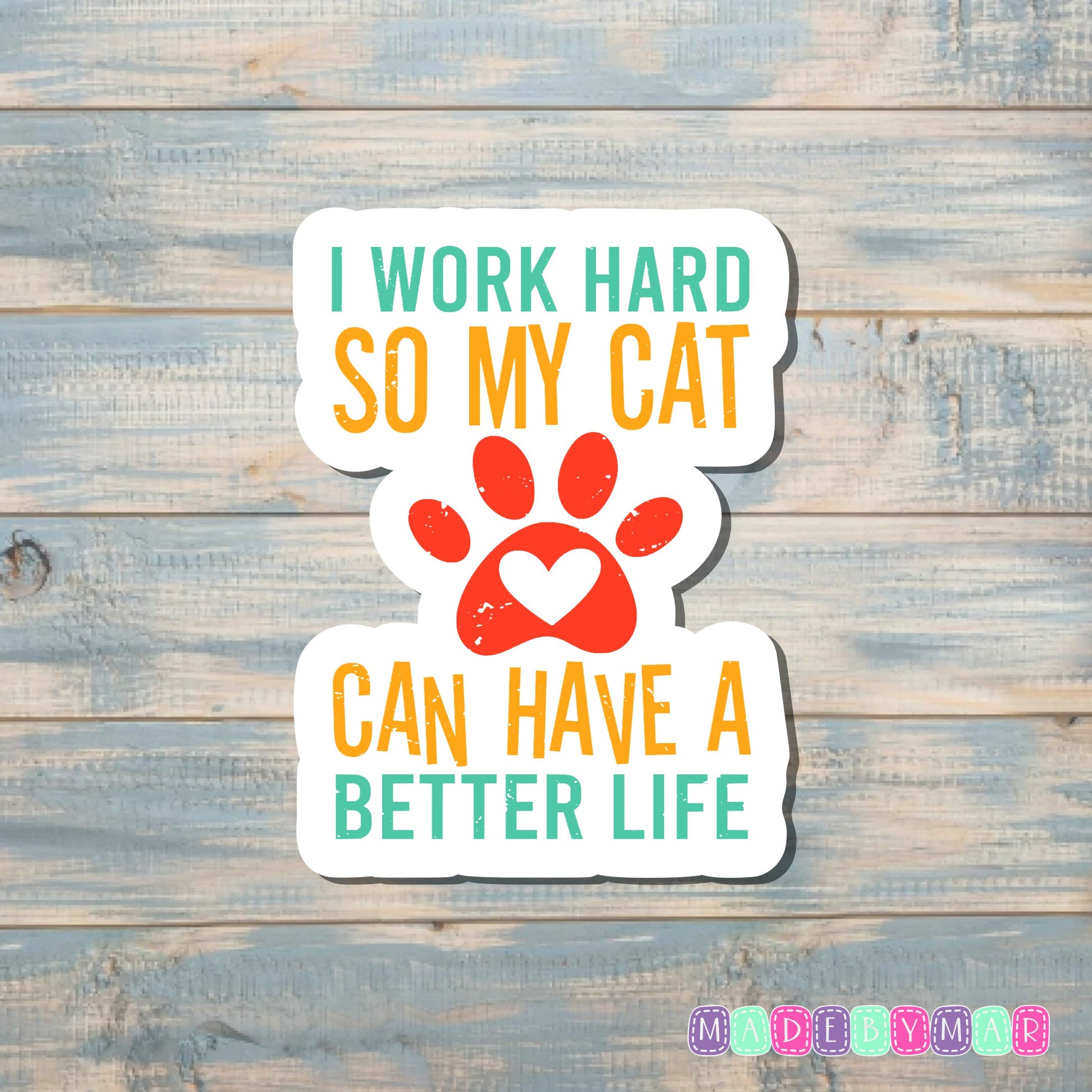 Work Hard to Give my Cats a Better Life |Sticker or Magnet | Cat Mom